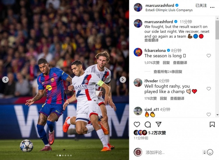 拉什福德社媒晒出比赛相片,并写说念:“咱们致力于交游,但昨晚的比赛效果不如咱们所愿。”