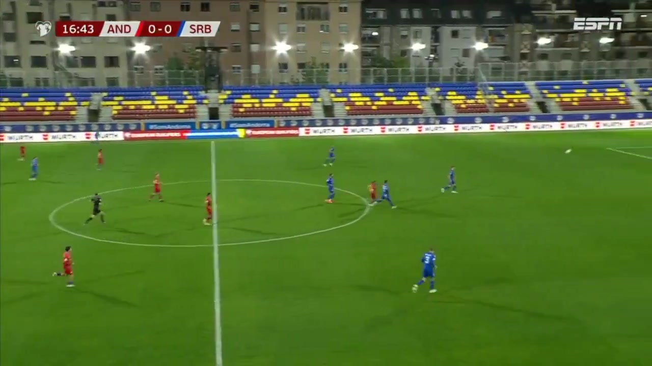上半场比赛,安说念尔球员洛佩斯打进一粒精彩的超远吊射,他在中圈隔邻抢断后起脚吊射,塞尔维亚门将,现着力于伯恩茅斯的佩特洛维奇因站位靠前未能扑出皮球。