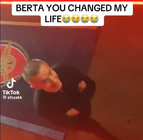 赛后,又名阿森纳球迷在社媒晒出视频,他向正在进程球员通说念的球队总监贝尔塔大叫,以庆祝球队的大捷,尔后者昂首微微一笑以回话。