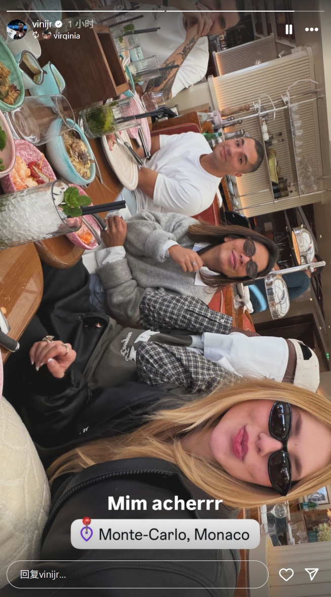 此前劈叉风云被女友海涵!维尼修斯社媒晒照,与女友共游摩纳哥