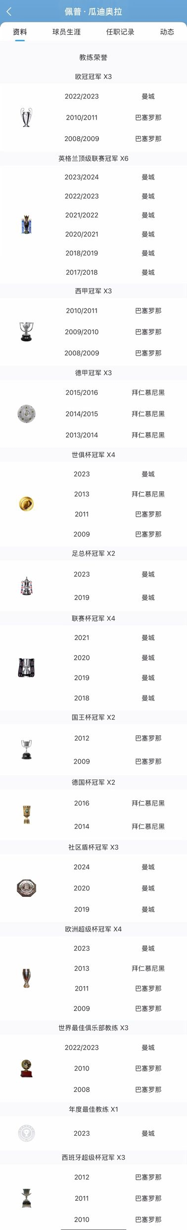 瓜迪奥拉抓教糊口主要荣誉一览↓