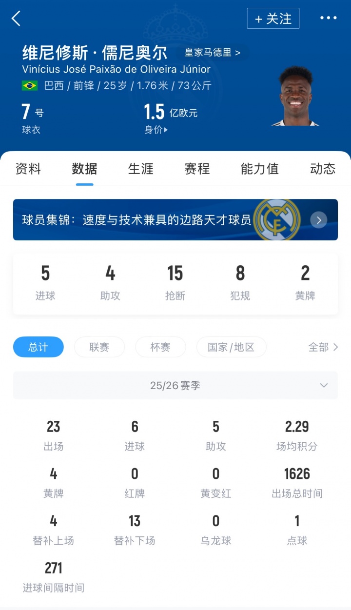 据了解,吉达国民景况为维尼修斯提供一份5年合约,每年薪水约2.2亿镑,这个数字比C罗在得胜的薪资要向上3000万,维尼修斯在这五年内将赢得超10亿欧元的收入。