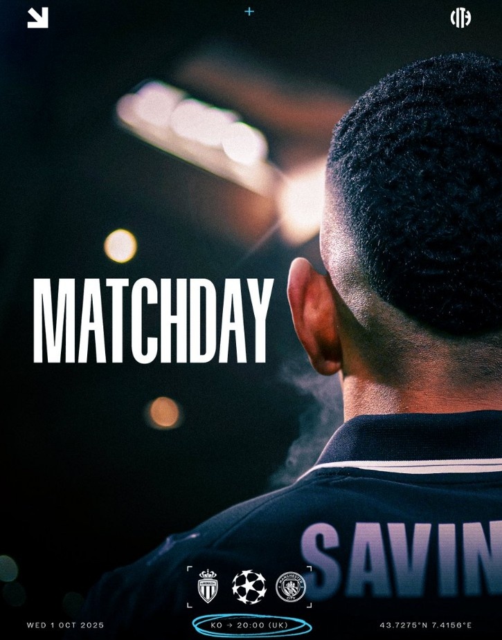 曼城官推晒海报预热对阵摩纳哥,萨维尼奥单东谈主出镜