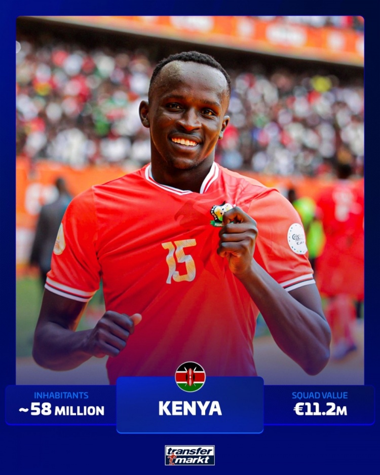肯尼亚——东谈主口5800万——国度队身价1120万欧
