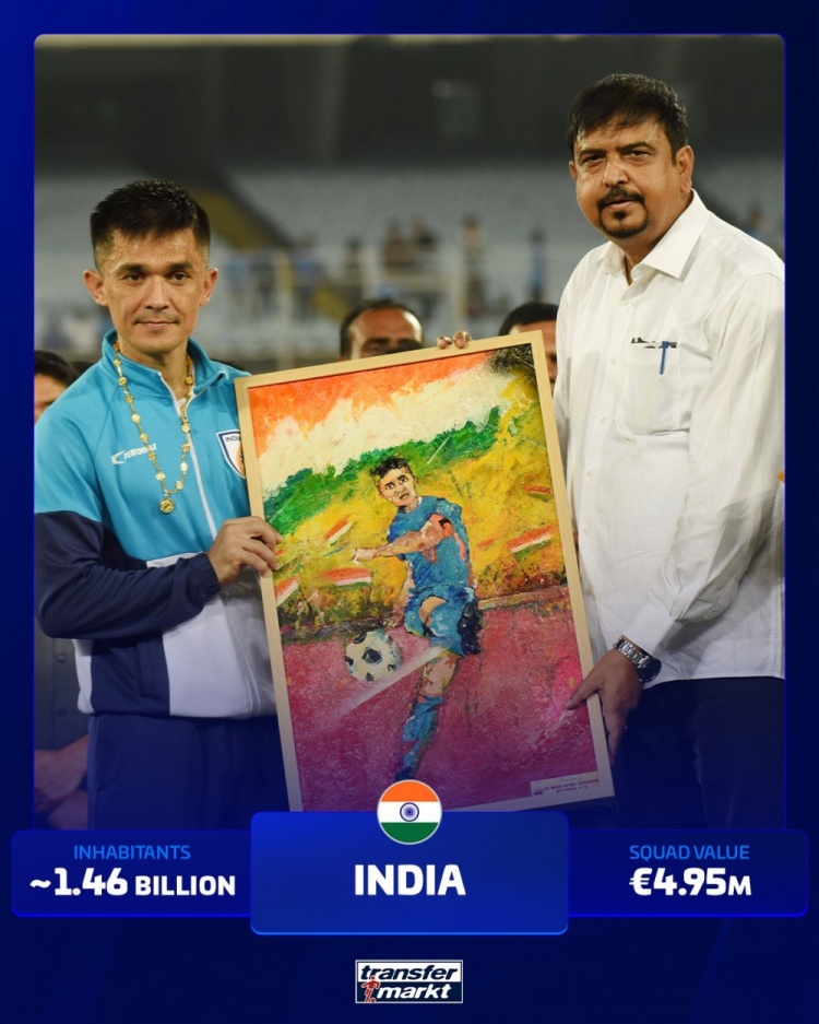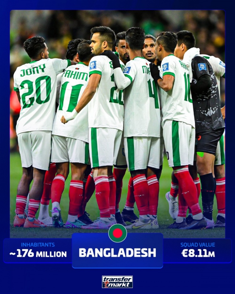 孟加拉国——东谈主口1.76亿——国度队身价811万欧