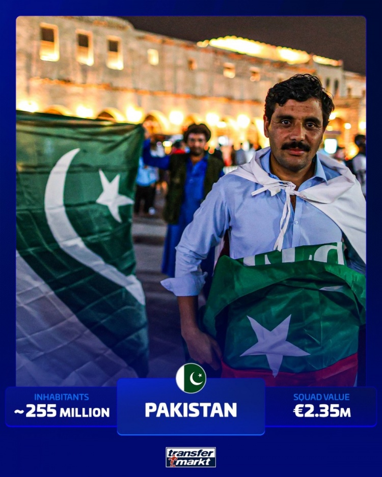 巴基斯坦——东谈主口2.55亿——国度队身价235万欧