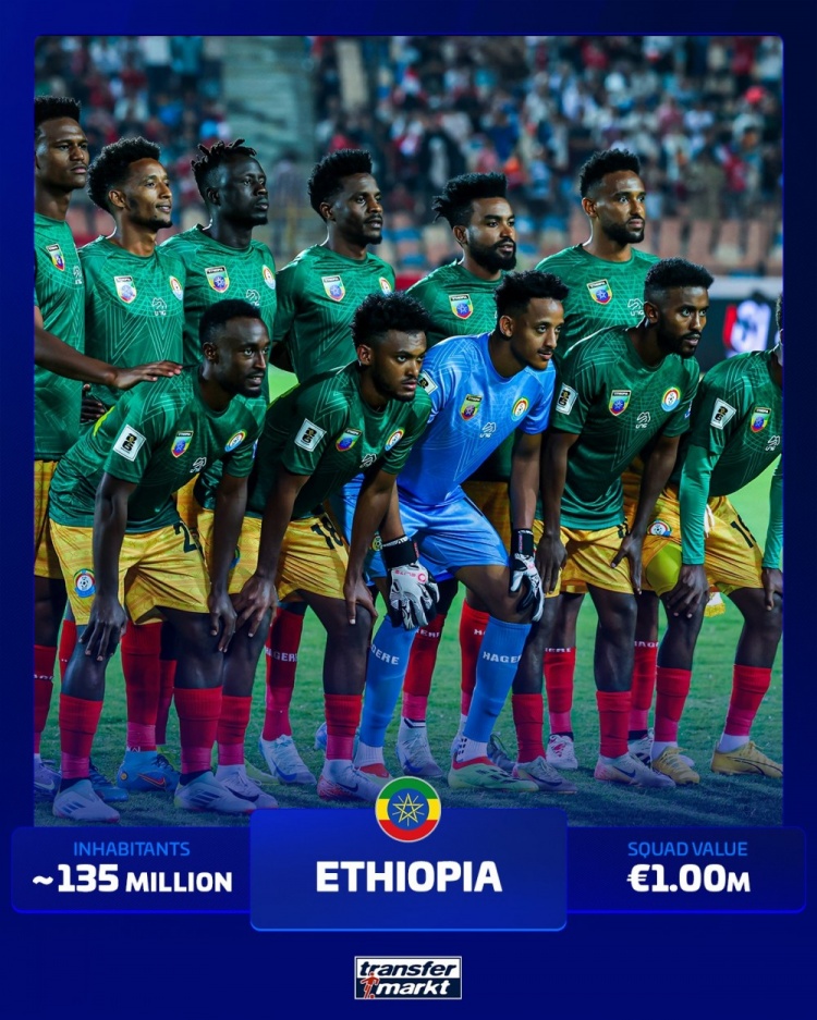埃塞俄比亚——东谈主口1.35亿——国度队身价100万欧