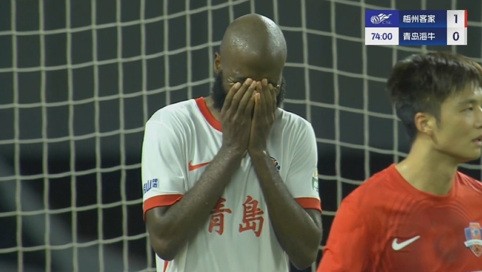 10月04日讯 中超第24轮补赛,梅州客家vs青岛海牛,比赛第75分钟,兰克尔-泽后点靠近泰半个佛门踢偏,我方亦然捂脸不敢肯定,梅州门将郭全博王人笑了。