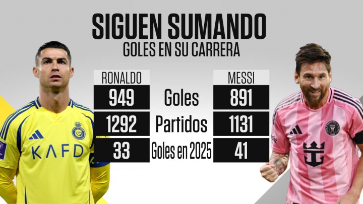 梅罗面前进球数:C罗949球梅西891球,本年C罗进33球、梅西进41球