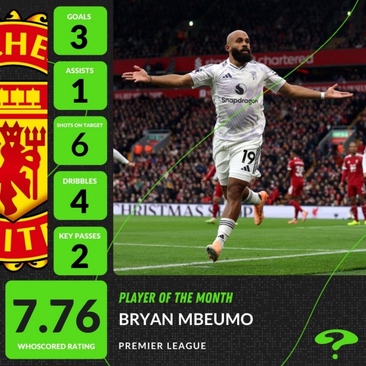曼联新援姆伯莫当选,他在本月英超3场比赛孝顺3球1助攻,匡助红魔得到3连胜。