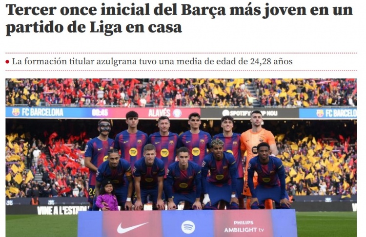 芳华风暴!世体:巴萨赢阿拉维斯的首发威望平均年齿为24.28岁
