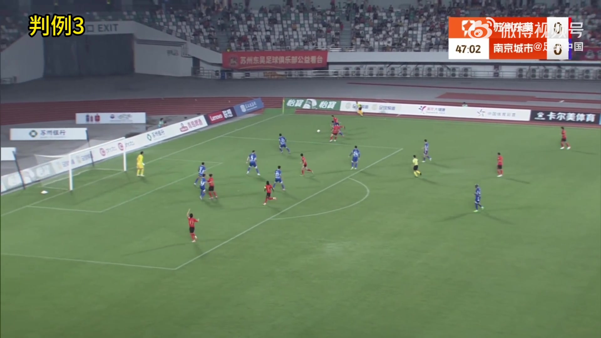 判例三:中甲联赛第24轮,苏州东吴vs南京城市。比赛第48分钟,苏州东吴6号队员头球射门,南京城市守门员将球扑出,助理评判员暗示球的举座照旧朝上球门线,评判员判苏州东吴队进球得分。