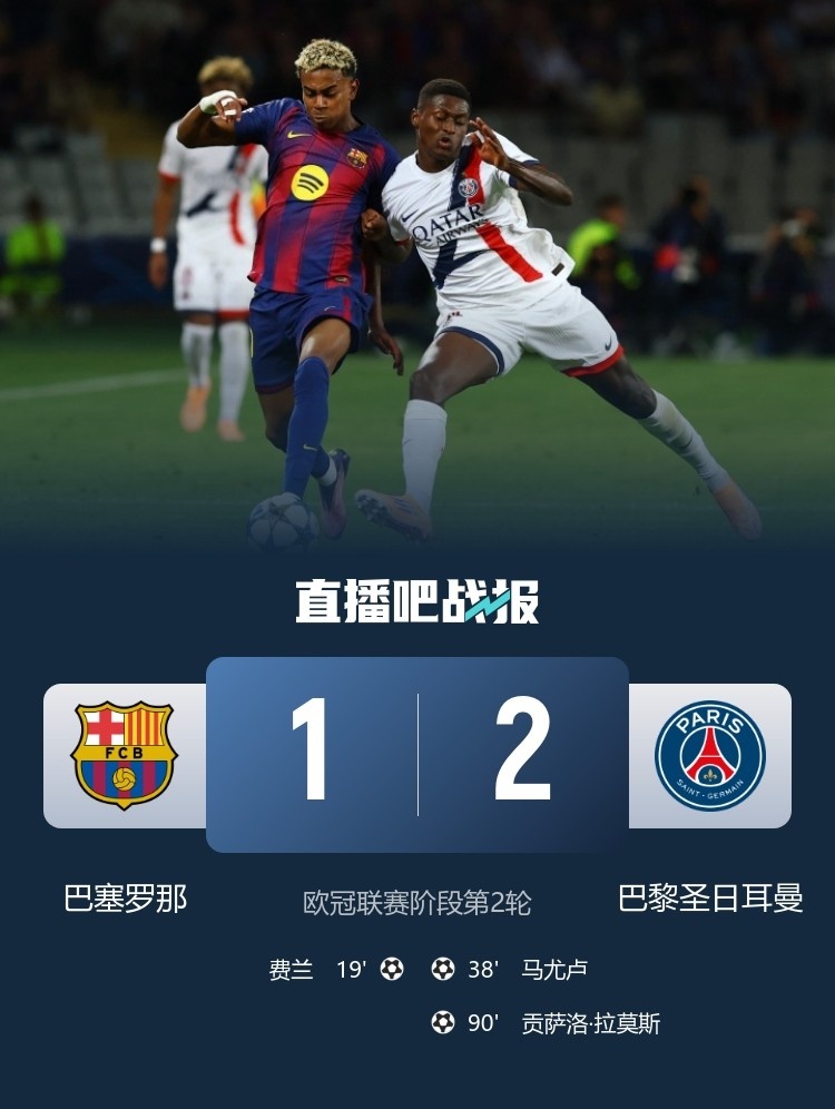 10月2日讯 欧冠联赛第2轮,巴萨主场1-2遭巴黎绝杀。