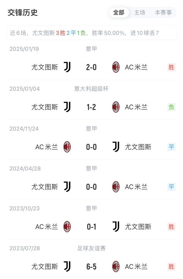 尤文联赛3胜2平积11分,近期各赛事4连平;米兰联赛4胜1负积12分,近期各赛事5连胜。尤文联赛对阵米兰已贯穿4场不败(2胜2平)。