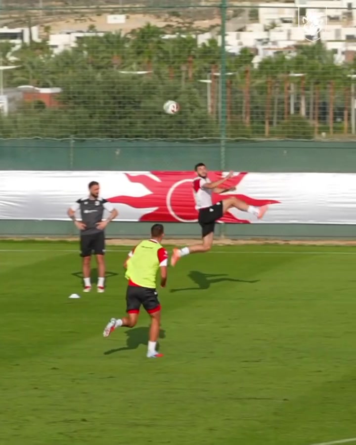 10月10日讯 格鲁吉亚国度队昨日晒出了一段克瓦拉茨赫利亚检修时停球的像片。