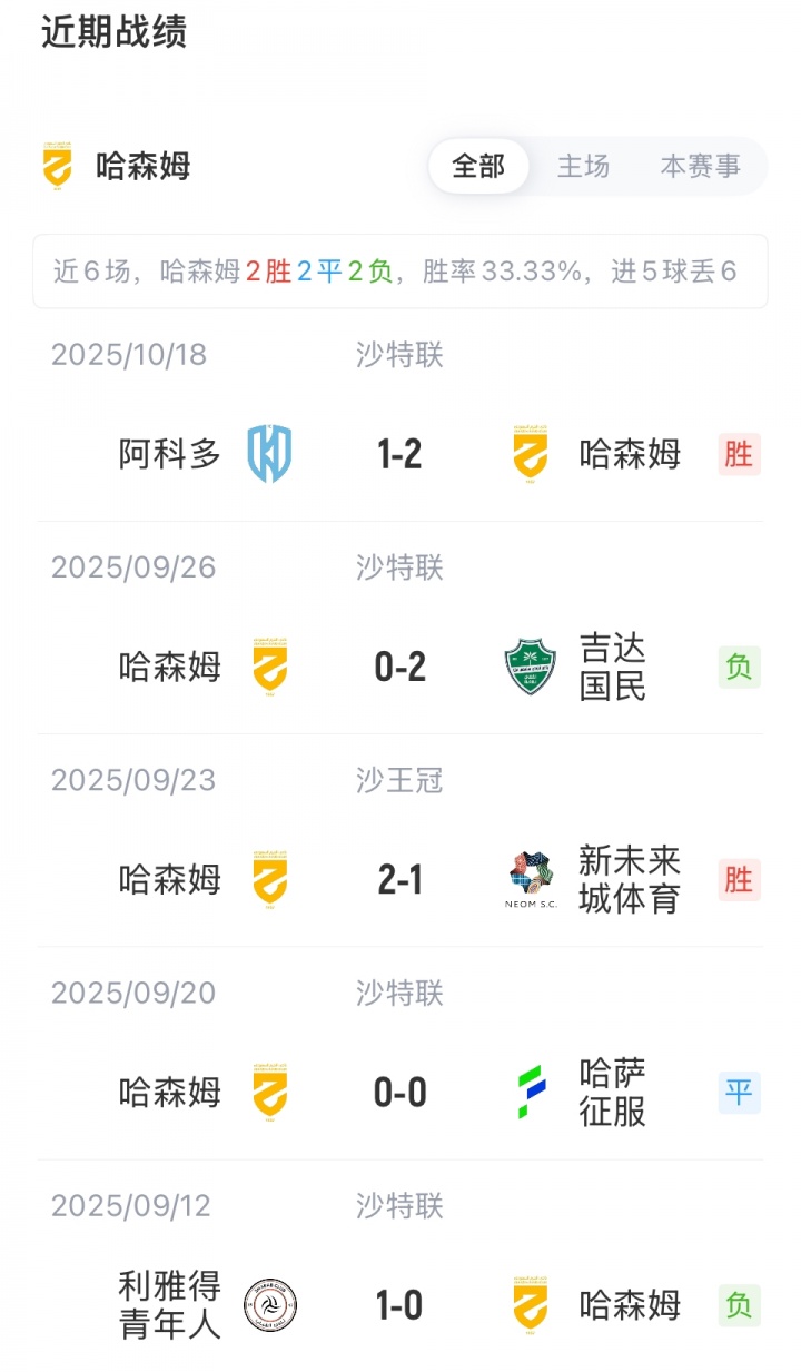 10月26日讯 沙特联第6轮,哈森姆主场迎战利雅得收效,赛前首发名单公布。