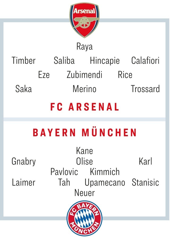 11月24日讯 拜良善阿森纳在本轮联赛各自赢得大捷,两队也将在周中迎来欧冠榜首之争,拜仁作念客挑战阿森纳。《踢球者》也估计了两边首发: