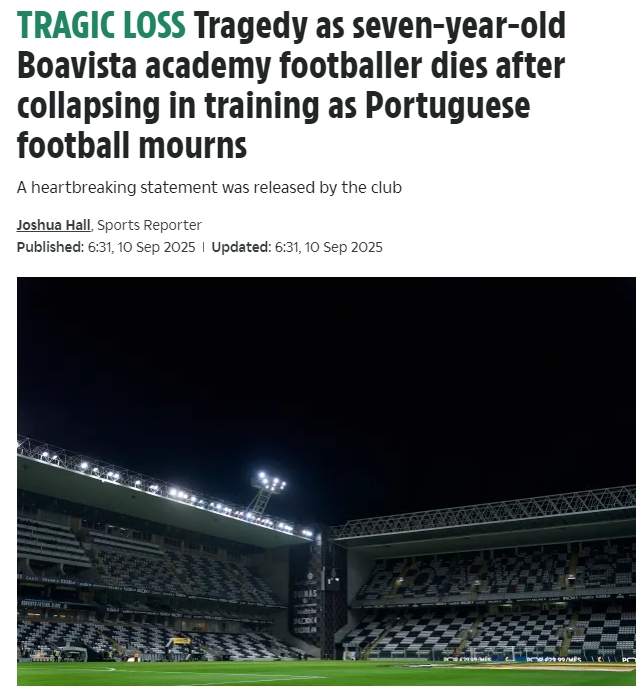 09月10日讯 据《太阳报》报谈,葡萄牙俱乐部博阿维斯塔的又名7岁青训球员在纯熟中倒地身一火,使葡萄牙足球界再次堕入追到之中。